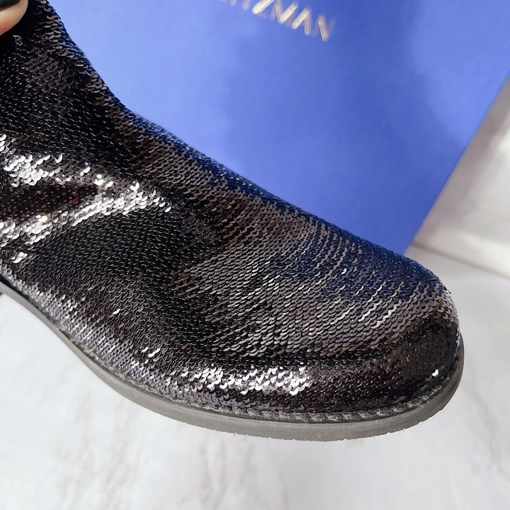 STUART WEITZMAN 5050 Stretch Over The Knee Boots OTK Leather Sequin Black